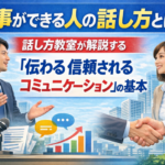 2026年3月30日 / 最終更新日 : 2026年3月29日 comcollege 話し方教室 教養講座 「仕事ができる人の話し方とは?話し方教室が解説する“伝わる・信頼されるコミュニケーション”の基本」(じっくり教養 話し方教室東京) 仕事ができる人は、単に専門知識やスキルが高いだけではありません。ビジネスの現場で成果を出し続ける人には、「伝わる話し方」と「信頼されるコミュニケーション」という共通点があります。 話し方は、評価・成果・人間関係に直結する […]