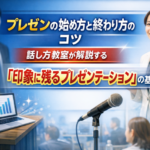2026年4月21日 / 最終更新日 : 2026年4月20日 comcollege 話し方教室 教養講座 「プレゼンの始め方と終わり方のコツ|話し方教室が解説する“印象に残るプレゼンテーション”の基本」(じっくり教養 話し方教室東京) プレゼンテーションの成果は、内容そのもの以上に「始め方(オープニング)」と「終わり方(クロージング)」で大きく左右されます。印象に残るプレゼンを実現するためには、最初と最後の設計が特に重要です。 なぜなら、冒頭で聞き手を […]