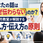 2026年4月10日 / 最終更新日 : 2026年4月9日 comcollege 話し方教室 教養講座 「あなたの話は”なぜ伝わらない”のか?話し方教室が解説する話し方・伝え方の原則」(じっくり教養 話し方教室東京) 「しっかり説明しているのに伝わらない」「何が言いたいのか分からないと言われる」——このような悩みは、ビジネスパーソンに共通する課題です。 実は、伝わらない原因は内容自体よりも「話し方・伝え方の構成」にあります。今回は、本 […]