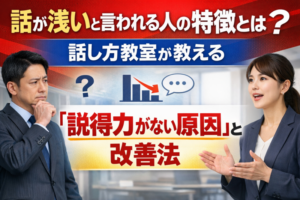 本学・話し方教室にも、ビジネスパーソンや管理職から同様の相談が少なからず寄せられます。今回は、話が浅いと言われる人の特徴と、説得力がない原因、そして具体的な改善法を解説します。