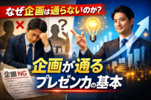 実は、企画が通らない原因はアイデアの質そのものよりも、プレゼンの伝え方にあるケースが大半なのです。企画が通るかどうかは、論理・相手視点・話し方という3つの要素が噛み合っていることが重要です。